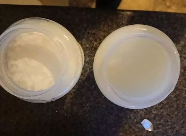 ▲父母称新配方(左)会出现结块问题,《曼彻斯特晚报》图