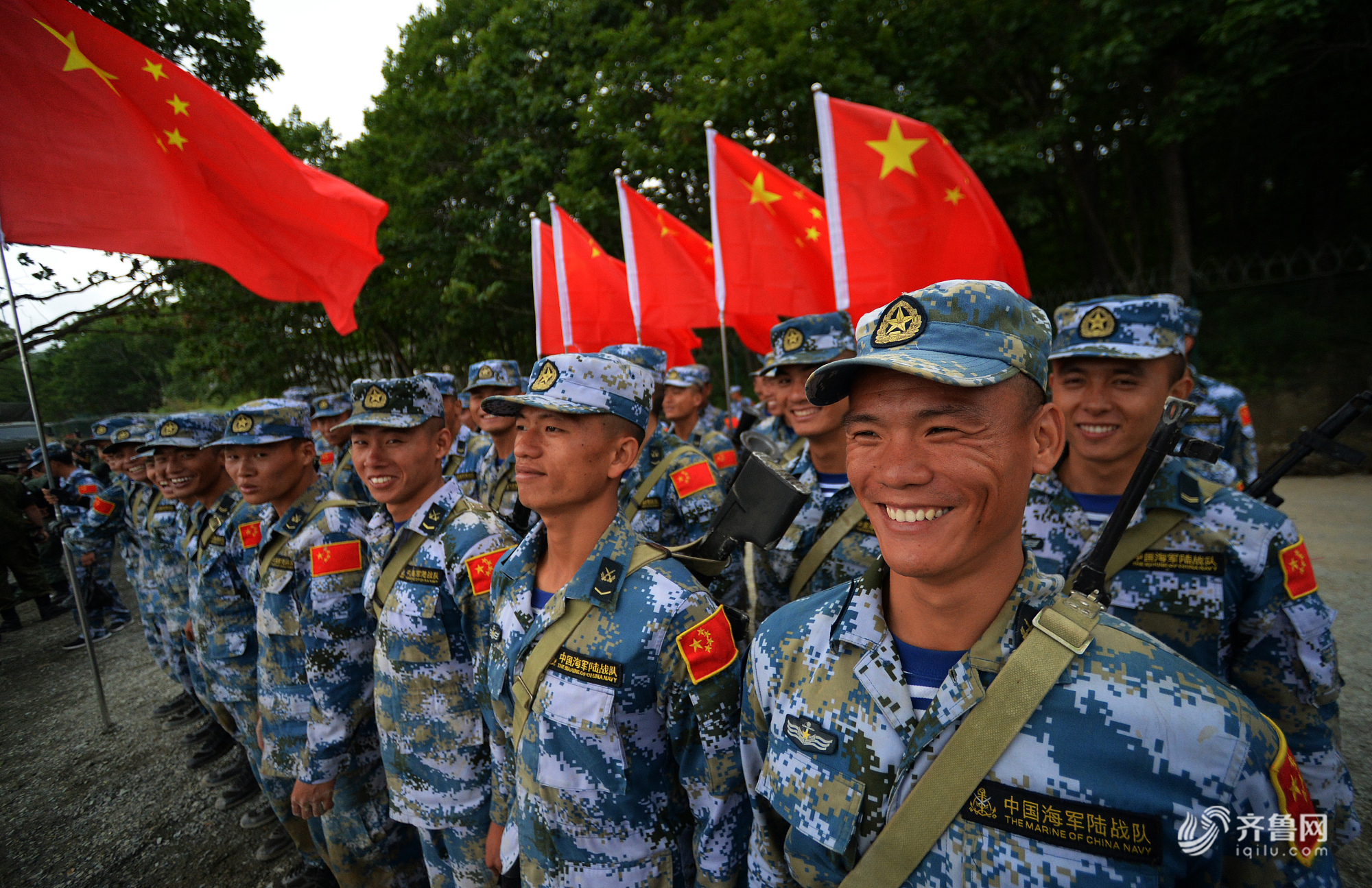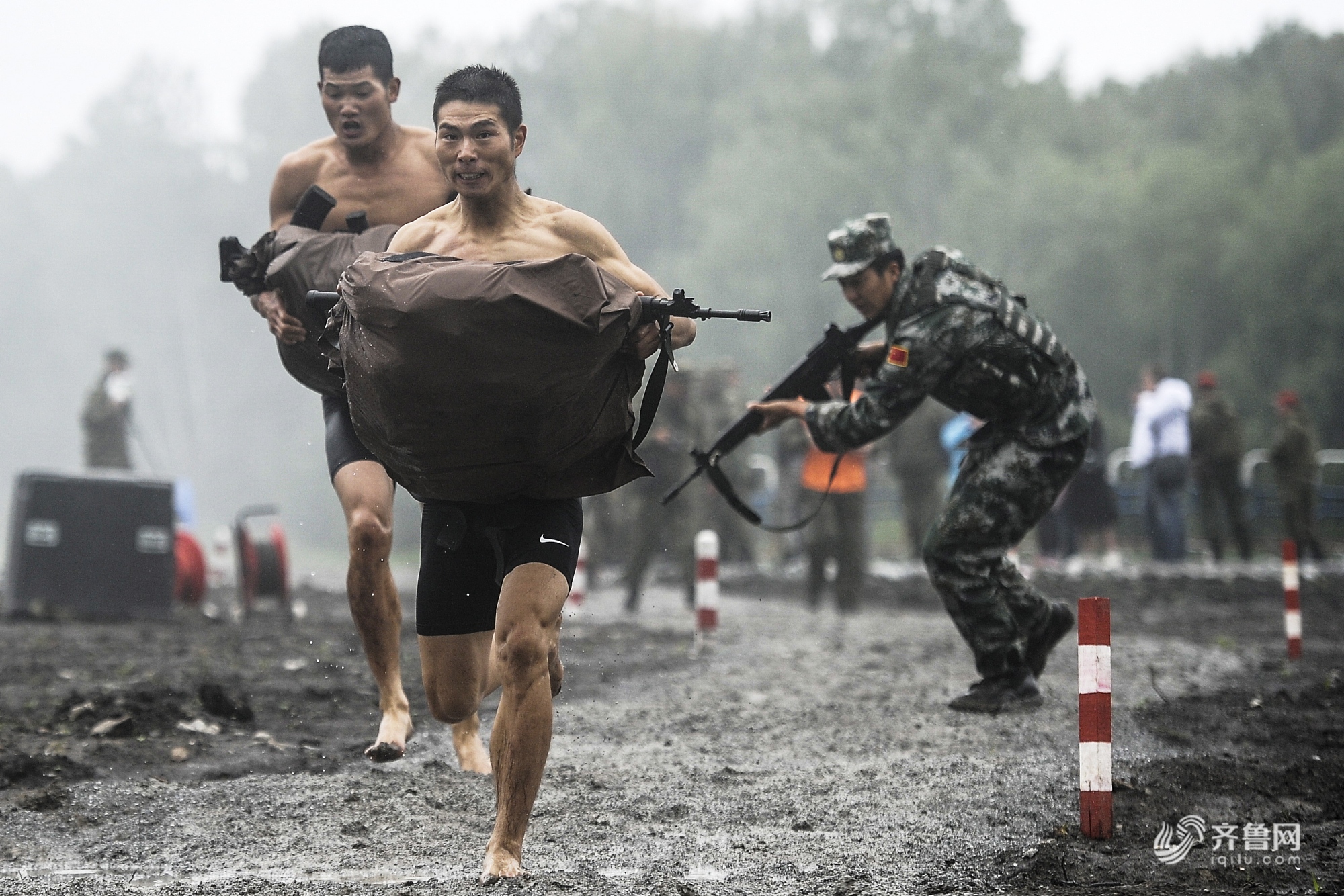 当地时间2016年8月3日,俄罗斯加里宁格勒,中国海军士兵参加2016国际军事竞赛海上突击比赛。