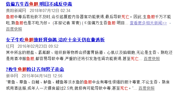 此前有媒体报道,湖北一个妈妈担心孩子用眼过度,将来得戴眼镜。又听说鱼胆能清火明目,于是每次做鱼都特意把鱼胆留下,让儿子吞服。孩子终于在吞掉一颗巨大的草鱼胆后被毒倒了。
