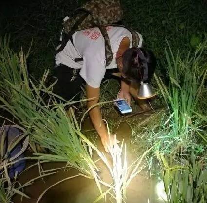 当晚,刚在水田中行进不到20分钟,刘金银就碰到一条有毒的“红斑蛇”。他追着蛇拍摄,险些被咬,整个过程短暂而惊险,但他没答应粉丝提出的“捉蛇”要求,“因为捉蛇是违法行为。”