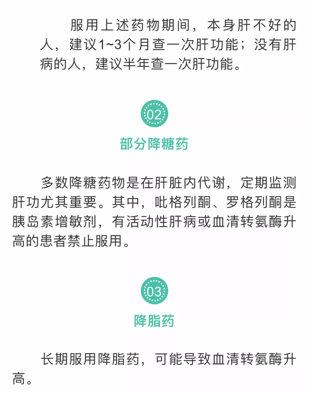 除了上面提到的药物,服用丙戊酸钠、卡马西平等抗癫痫药物,米诺环素、替加环素这种四环素抗生素及胺碘酮,也应定期监测肝功能。