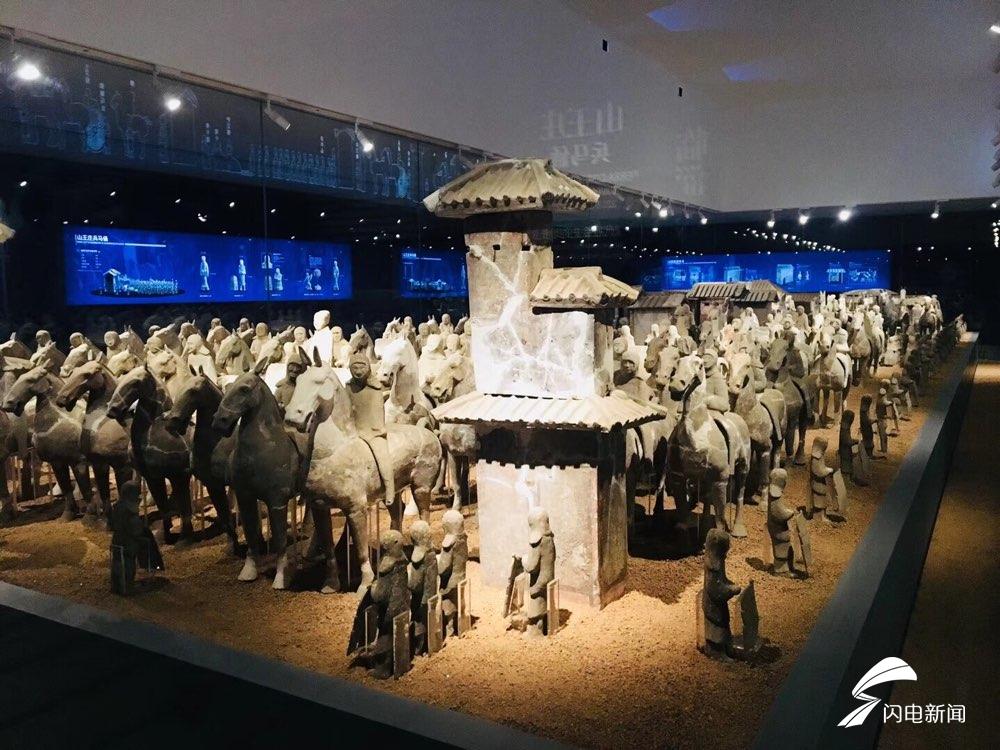 走进齐文化博物院考古展厅,临淄山王庄西汉兵马俑日前正式面世,步兵方阵由身着铠甲的步卒俑组成,还有陶楼、陶仓、马车等组成。完整地再现了汉代贵族生活和车马出行盛景,在全国也是独一无二的。俑坑显露非凡气度,车强马壮,人物形态各异,各种牲畜形态逼真,整个就是一座汉代城市生活场景再现。