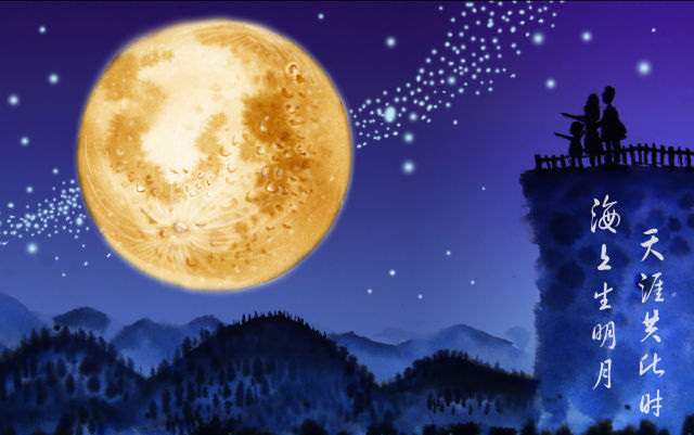 海上生明月,天涯共此时。
