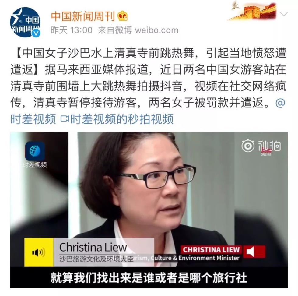 两名中国女游客日前在马来西亚清真寺前拍摄“热舞”视频,引发争议。