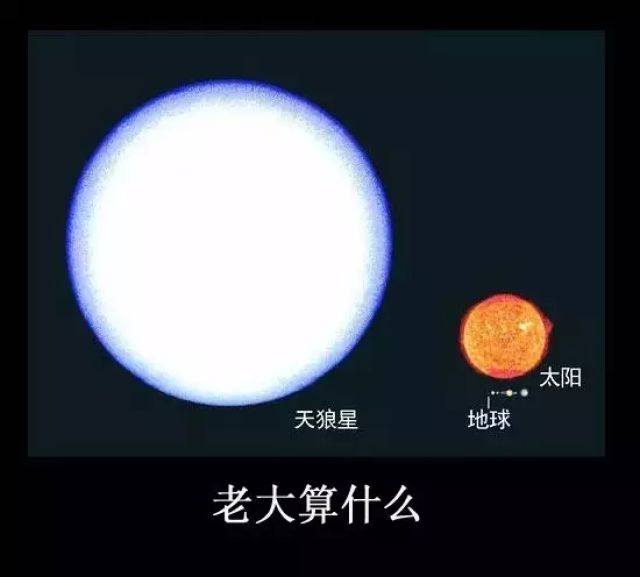 可是,我们接着往下看,看天狼星!没办法知道比太阳大多少了,天文数字,算不出来,总之大很多!