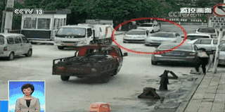 驾驶员:倒车撞到的,我还以为只是挂着他的东西,我就跑了。