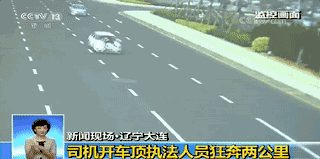 近日,执法人员在辽宁大连机场附近的高架桥进行日常稽查,一驾驶员为躲避检查猛踩油门,竟然顶着执法人员狂飙两公里。
