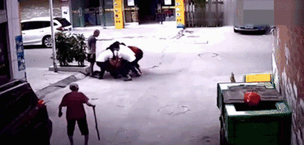 男子正想伸手去拉孩子,这时一个很面善的阿姨正好“路过”,一把将孩子护到自己身后;
