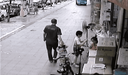 根据监控视频,3个孩子在门口玩,一个陌生男人恰好“路过”。