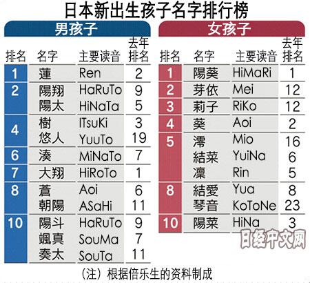 倍乐生自2005年起每年实施名字排行榜调查。今年从邮购的用户听取了9459个婴儿的名字。