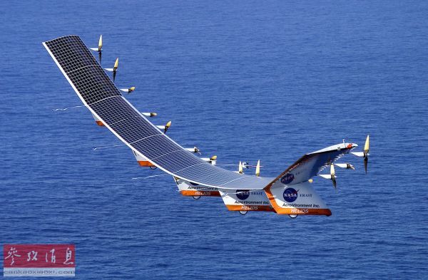 此后,世界各国都对太阳能无人机的技术进行了深入研究,例如美国国家航空航天局(NASA)于1999年推出了“太阳神”(Helios)大型太阳能无人机,外形尺寸达到创纪录水平,仅翼展就有75米(超过美军现役最大、翼展68米的C-5运输机),全机身采用碳纤维复合材料制造。“太阳神”于2001年8月创造了固定翼飞机最长时间水平飞行的新世界纪录,该机在2.9万米高空持续飞行超过40分钟。