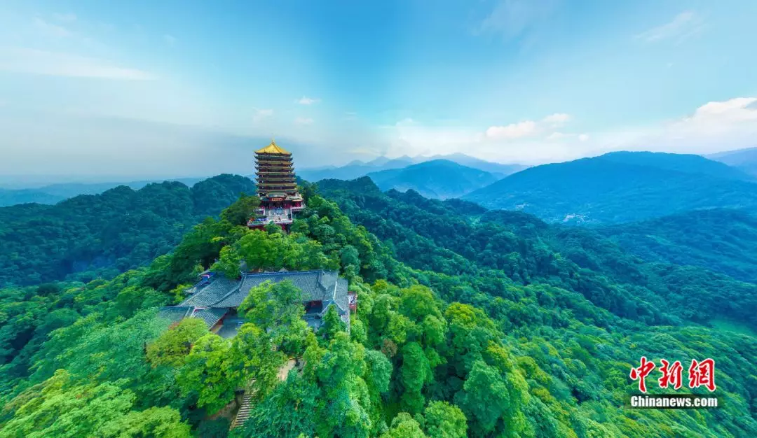 “青城天下幽”,青城山的峰环绕起伏、林木葱茏幽翠。