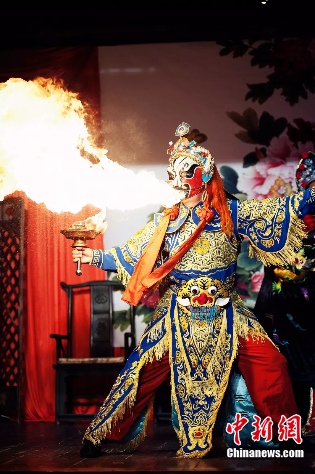 川剧之变脸、吐火。 成都市政府新闻办供图