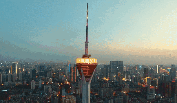 在339电视塔楼顶旋转餐厅,可以轻易俯瞰大半个成都。