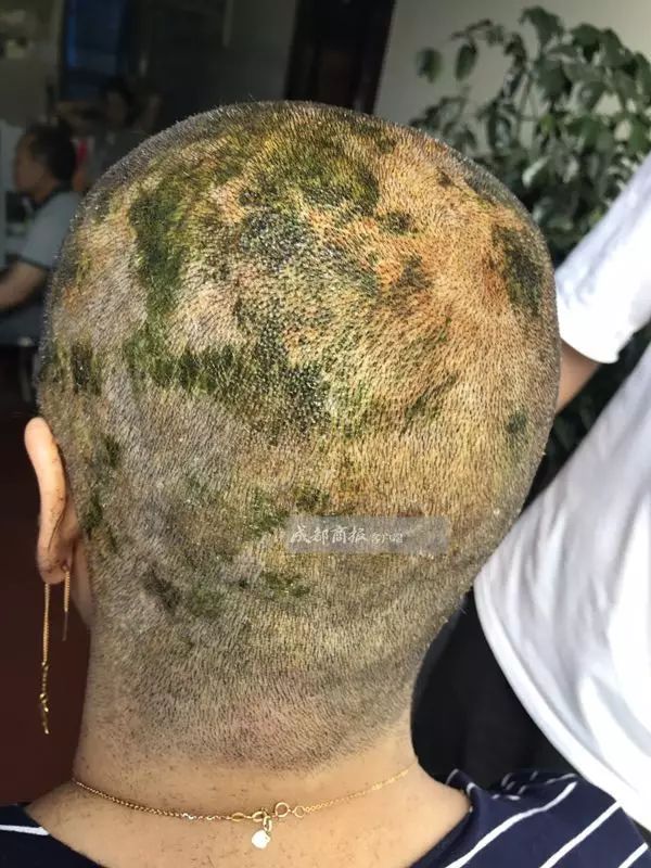 因美发师染发失败,大姐邓女士在7小时内染发4次,头皮也被染成了绿色,导致原本一头美丽的秀发被剃成了光头……
