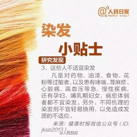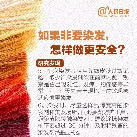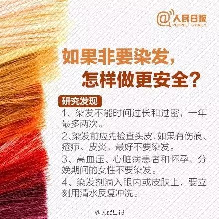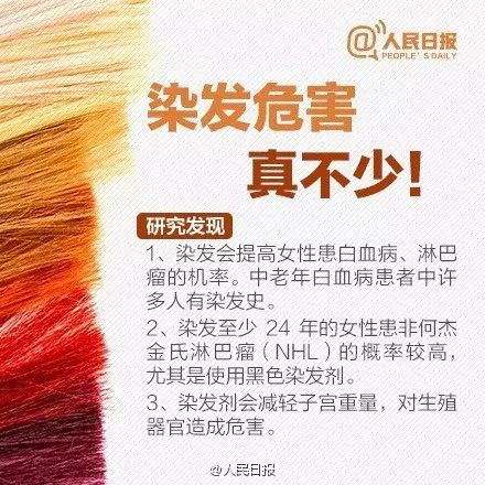 据北大肿瘤医院副主任医师刘卫平,研究发现,爱染发的女性罹患淋巴瘤的风险更高。一项研究分析了601例女性淋巴瘤患者和717例对照组女性,结果显示每年染发8次以上、染发超过25年的人罹患淋巴瘤的风险最高,比正常人升高了2.1倍;尤其是使用永久性染发剂的女性,罹患淋巴瘤的风险更高。现在市场上还没有完全无害的染发剂,所以最好注意染发的频率和方法,每年染发不要超过两到三次,不使用放置半年以上的染发剂,孕期或哺乳期的妇女最好不要染发。