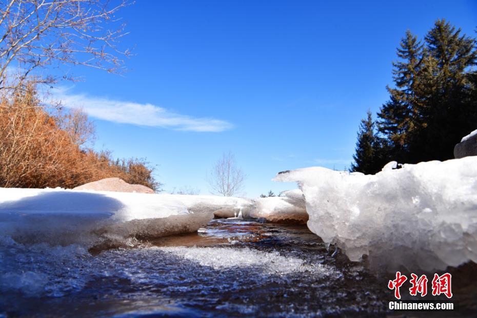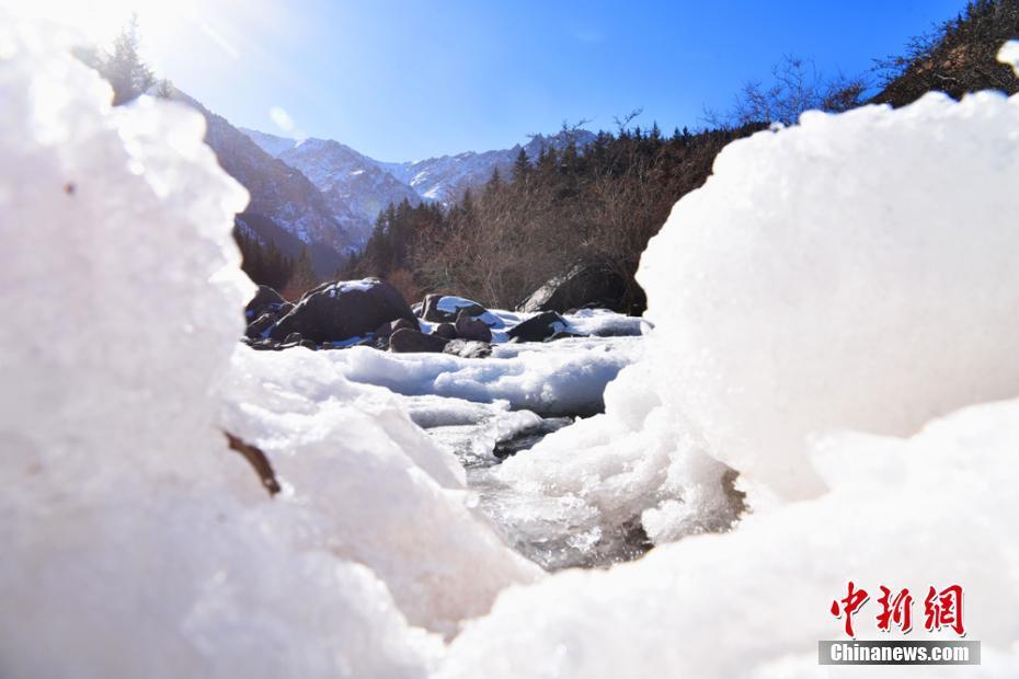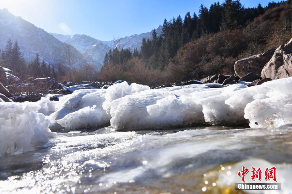 初冬时节,祁连山下甘肃张掖市肃南裕固族自治县境内的大小河流涌现冰河、冰瀑。在冬日阳光照射下,晶莹幽蓝的冰河、冰瀑晶莹剔透,如梦似幻。武雪峰 摄