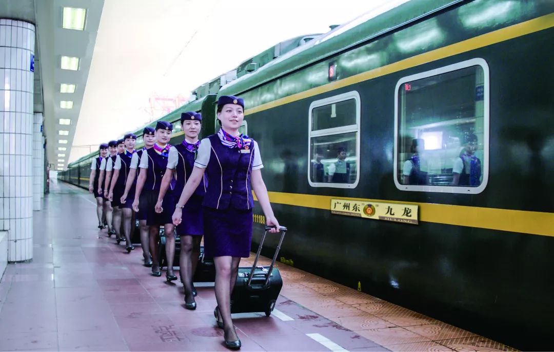 广九直通车乘务员是铁路乘务员中第一批化淡妆、抹口红、穿西服,系领带、穿皮鞋的