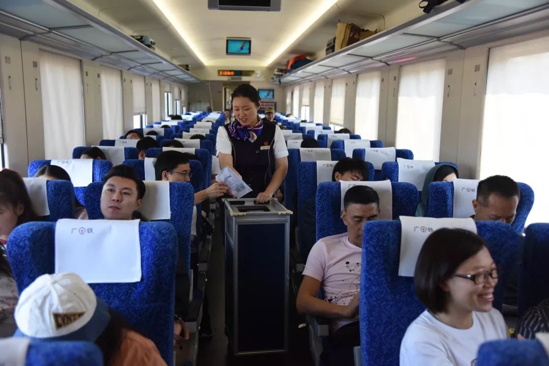 9时4分,广州东站开往香港九龙红磡站的Z807次广九直通车徐徐开动。列车员甜甜的笑容,让人如沐春风。车厢的地板擦得光亮照人,给人的感觉一尘不染,干净舒爽。