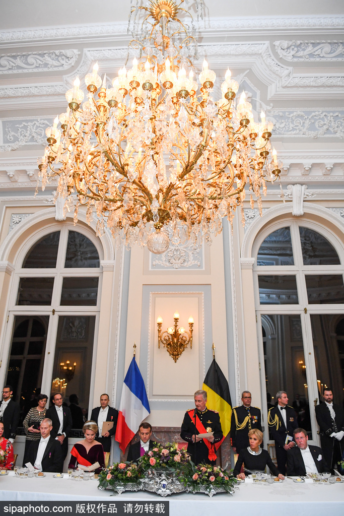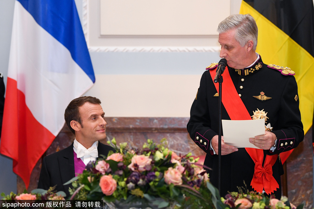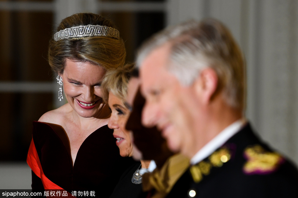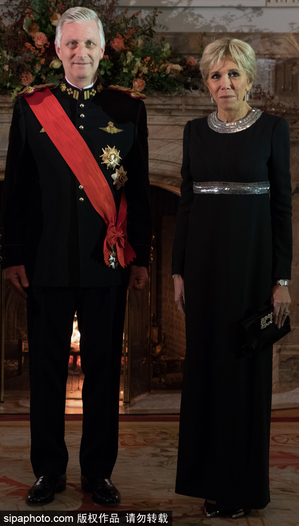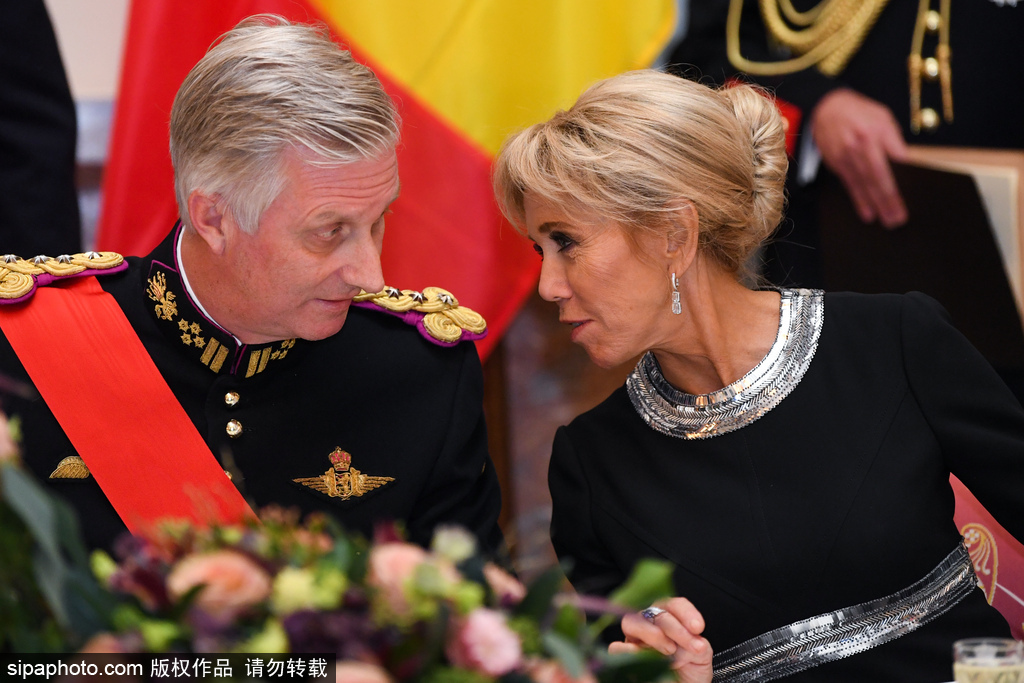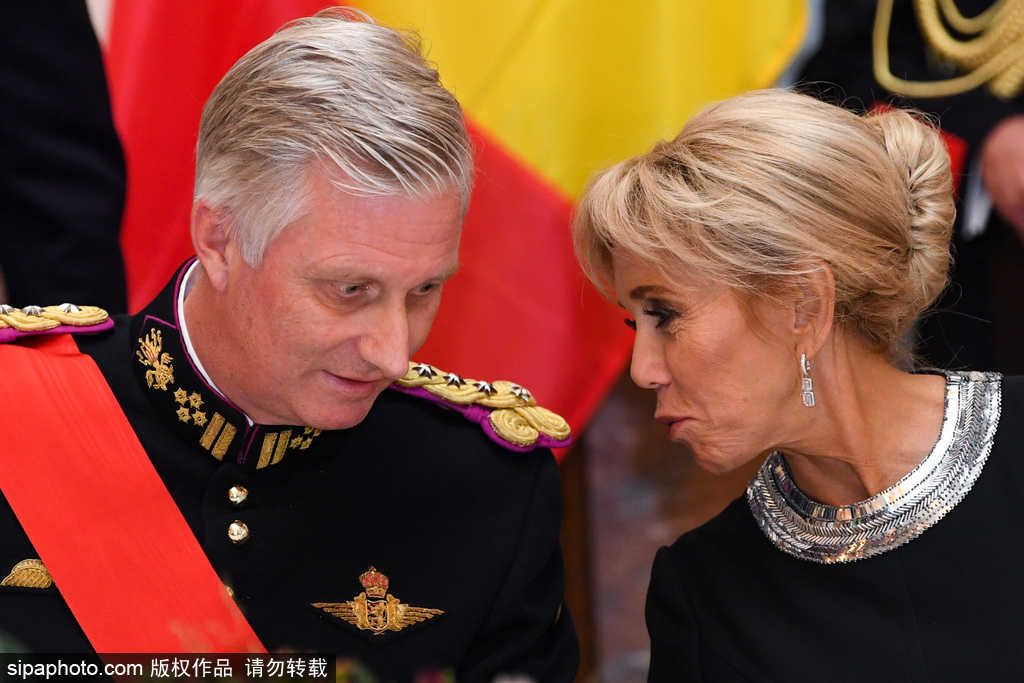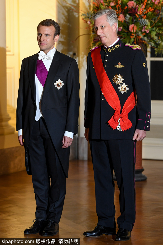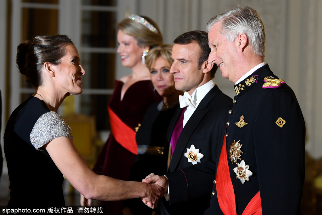 当地时间2018年11月19日,比利时布鲁塞尔,法国总统马克龙和夫人布丽吉特·马克龙对比利时进行国事访问,比利时国王菲利普与王后玛蒂尔德亲自迎接。