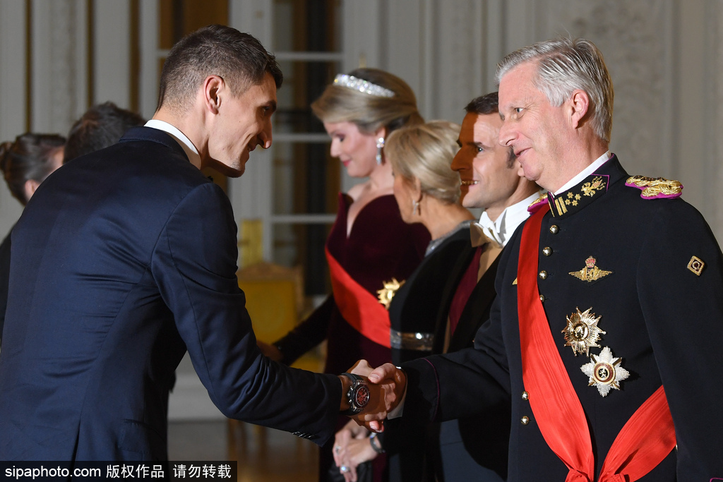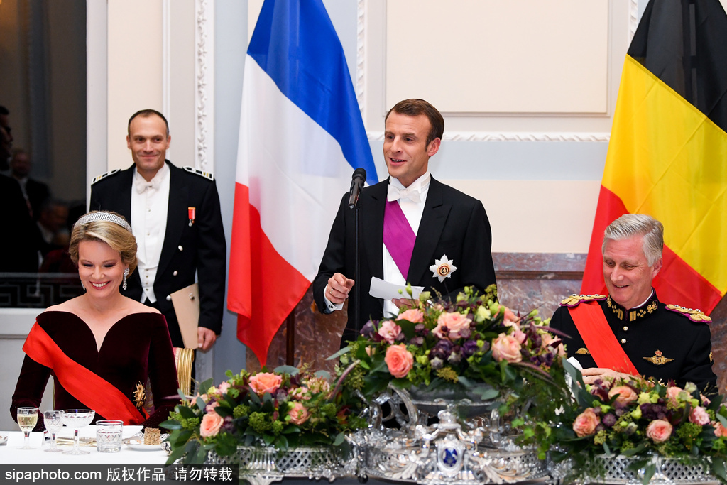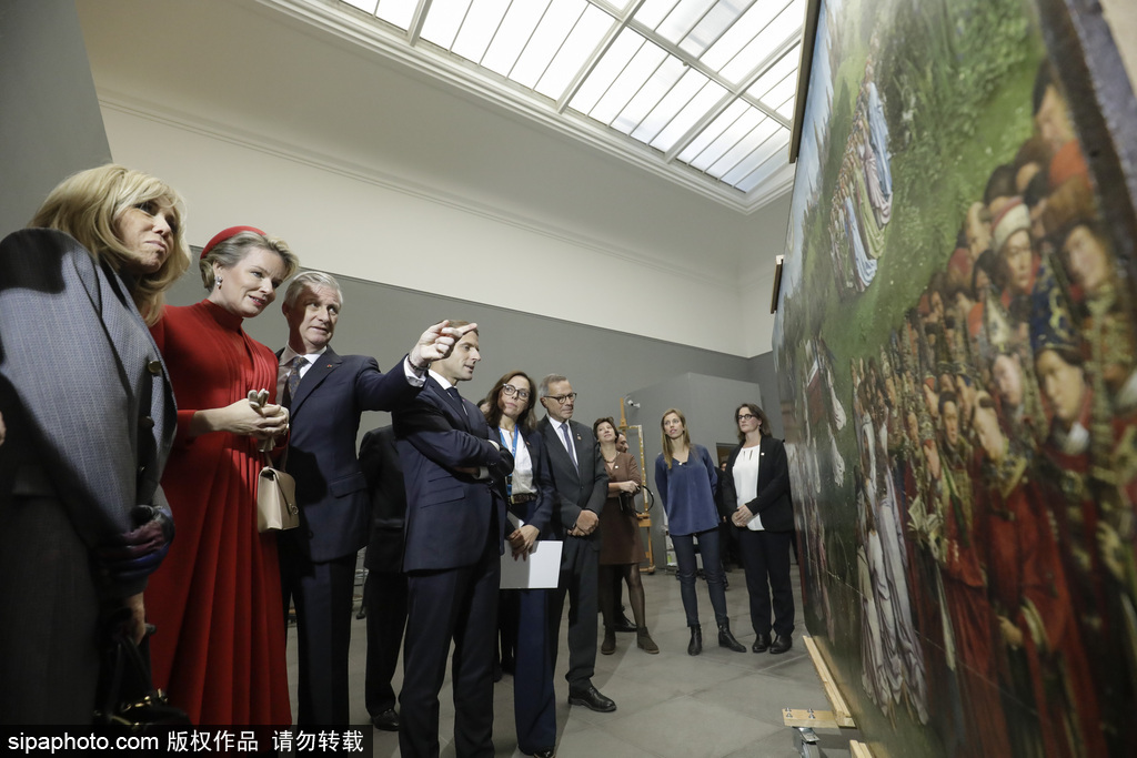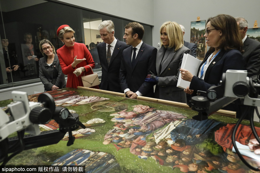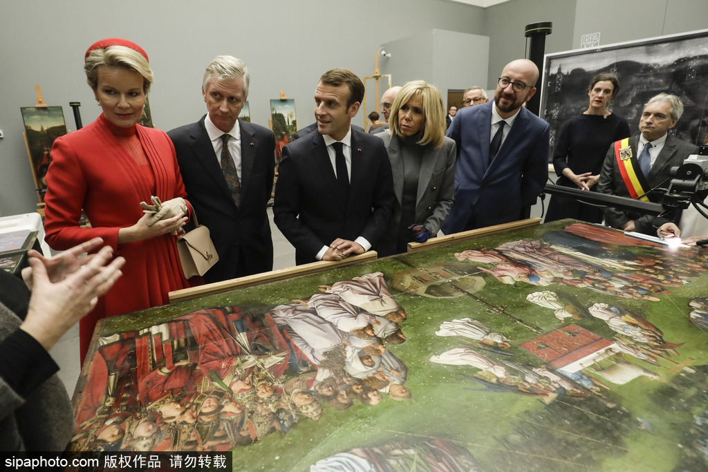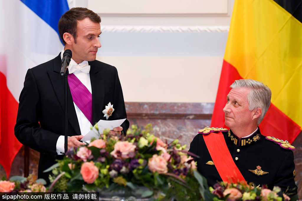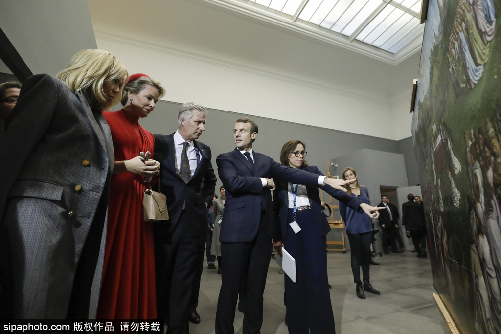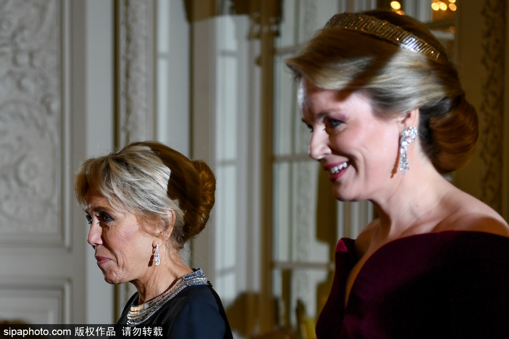 当地时间2018年11月19日,比利时布鲁塞尔,法国总统马克龙和夫人布丽吉特·马克龙对比利时进行国事访问,比利时国王菲利普与王后玛蒂尔德亲自迎接。