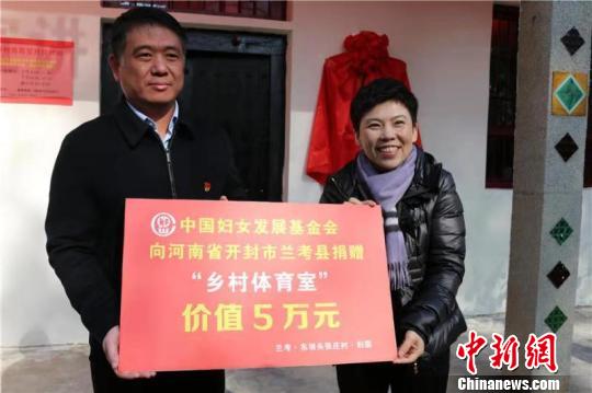 中国妇女发展基金会与邓亚萍联合向兰考县张庄村捐赠“乡村体育室”。 刘晶 摄