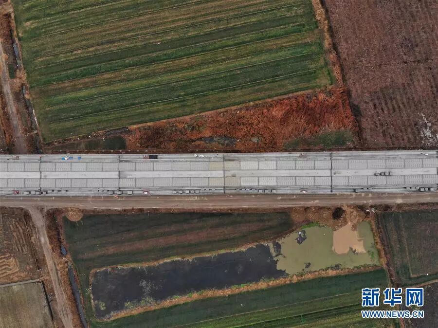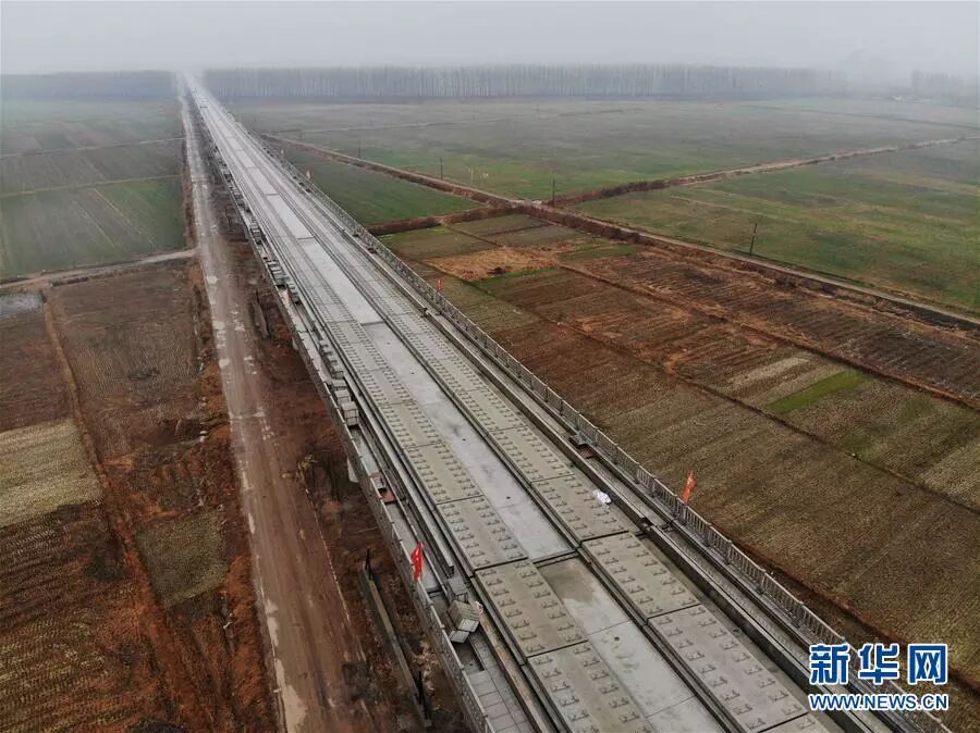 12月2日拍摄的鲁南高铁山东临沂段(无人机拍摄)。 日前,由中铁十四局集团承建的鲁南高铁临沂至曲阜段1标段的无砟轨道铺设完成,至此鲁南高铁临沂段无砟轨道全部铺设完成。 新华社记者 邢广利摄