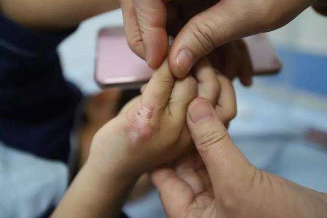 童童的奶奶为记者展现了孙子此前留下过的伤痕,童童左手有一道泛红的疤痕,头皮有多块明显稀少,有一只耳朵之前还流过脓,现在还在治疗。