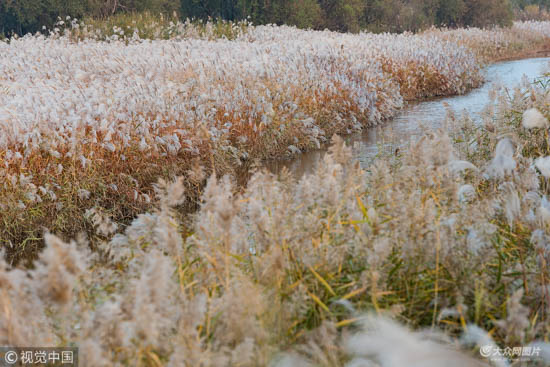 10月24日,东营黄河口生态旅游区,芦花飞雪。路边、河岸,或浓密、或稀疏,处处都有它摇曳的身影,这样的芦苇,足以入画、入诗。虽然最常提及的是芦苇,芦荡其实是两种植物一并生长,一为苇,一为荻,正是《诗经》中广为流传的蒹与葭。苇与荻,貌似而神异,芦花盛开,苇絮纷飞,一同谱写着黄河口的诗意。