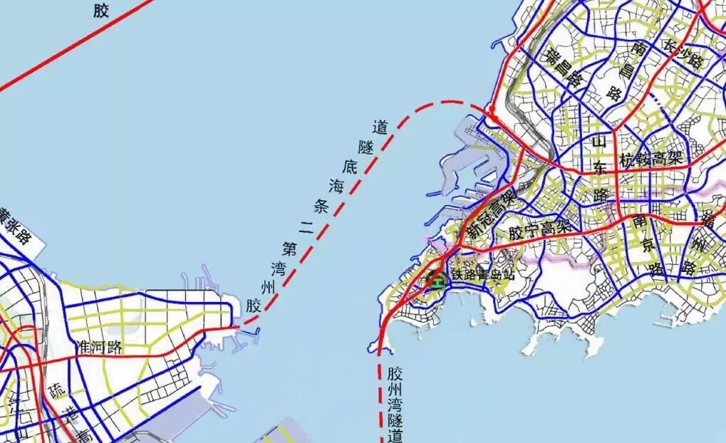 胶州湾第二条海底隧道位置示意图 来源:青岛规划局网站