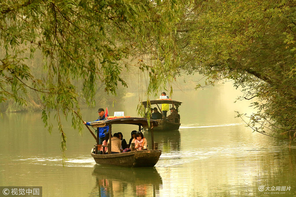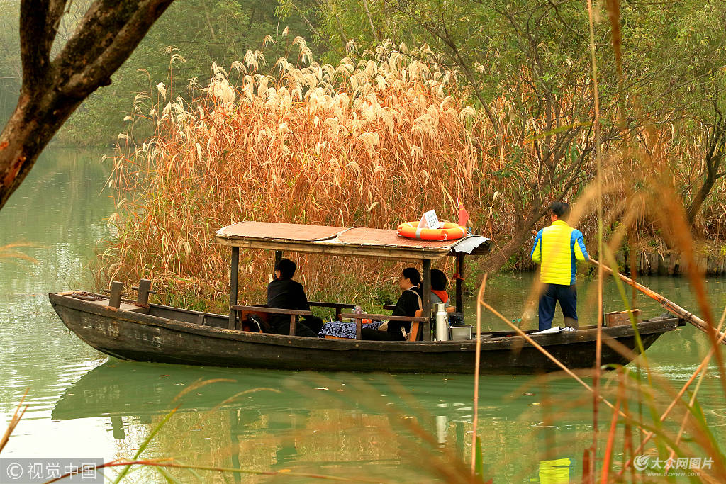 深秋芦花盛开,杭州西溪湿地公园举办听芦节,吸引众多游客,坐摇撸船,悠哉游哉赏美景。