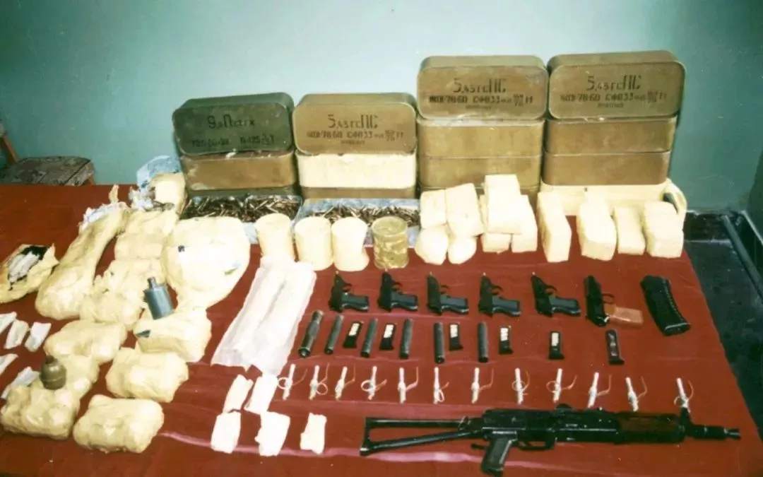 缴获的毒品枪支。