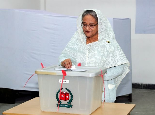 哈西娜是孟加拉国国父穆吉布·拉赫曼之女。她30日在达卡投票后说:“选民将给我们再次为他们服务的机会,我们可以保持国家的发展势头、带领孟加拉国向前发展。”