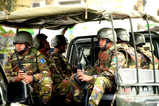 12月26日,在孟加拉国首都达卡,士兵在街头警戒。孟加拉国24日开始在全国范围内指派军队以维持国民议会选举期间社会秩序。(新华社发)
