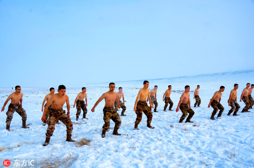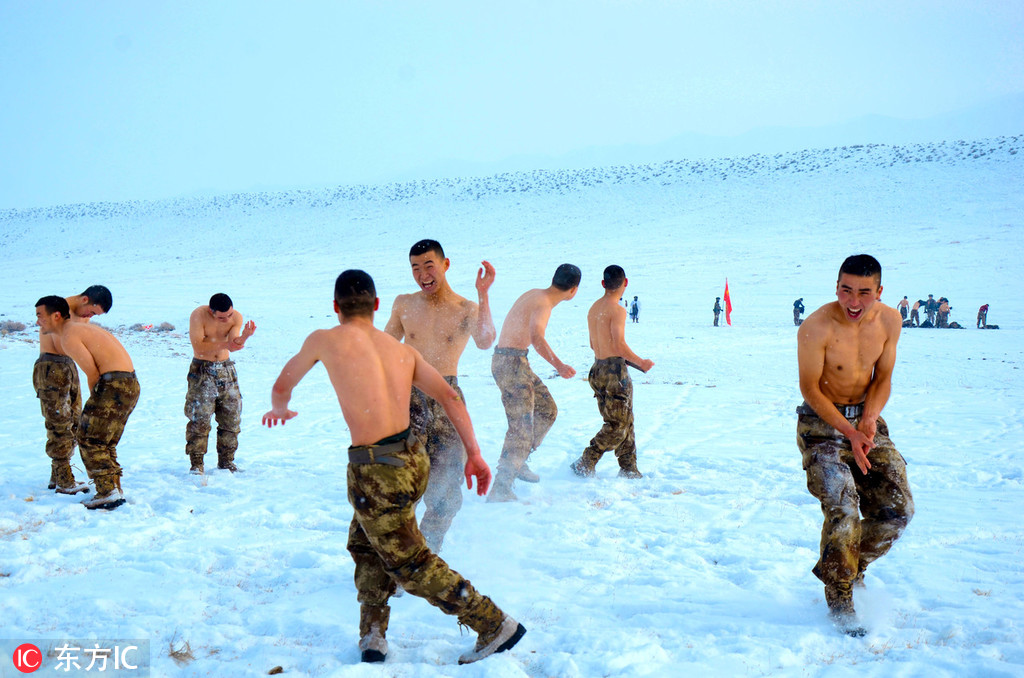 2019年1月2日,“雪中大保健呀,爽!”“越练越热,过瘾!”“这样才有兵味!”冰天雪地寒风中,一个个赤膊士兵嗷嗷叫,像极了铆足了劲的小老虎!