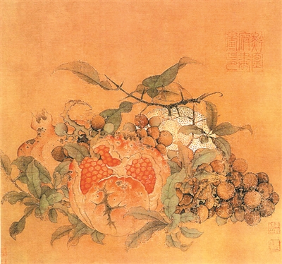 《橘子葡萄柚子石榴图》