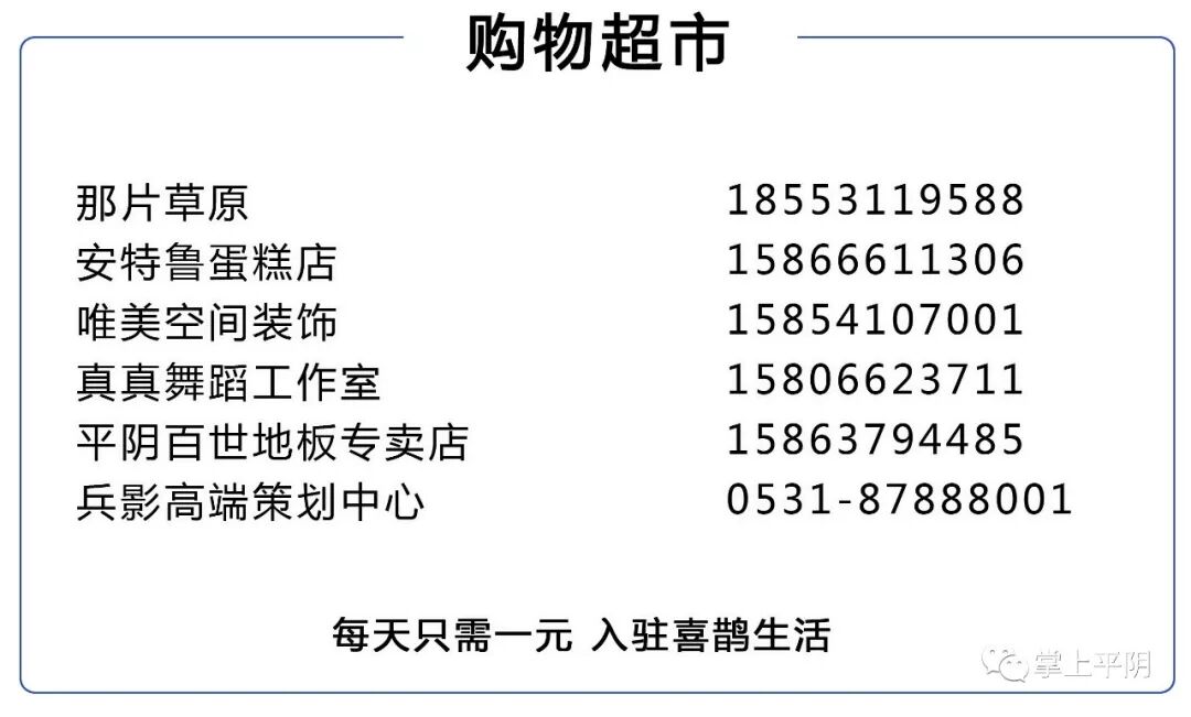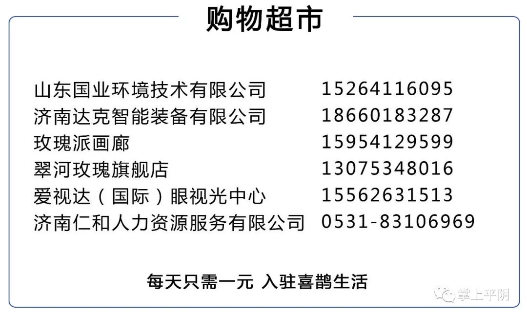 掌上平阴近期在首页消息中对入驻《喜鹊生活》平台商家,进行免费推介。《喜鹊生活》方便百姓,服务商家。