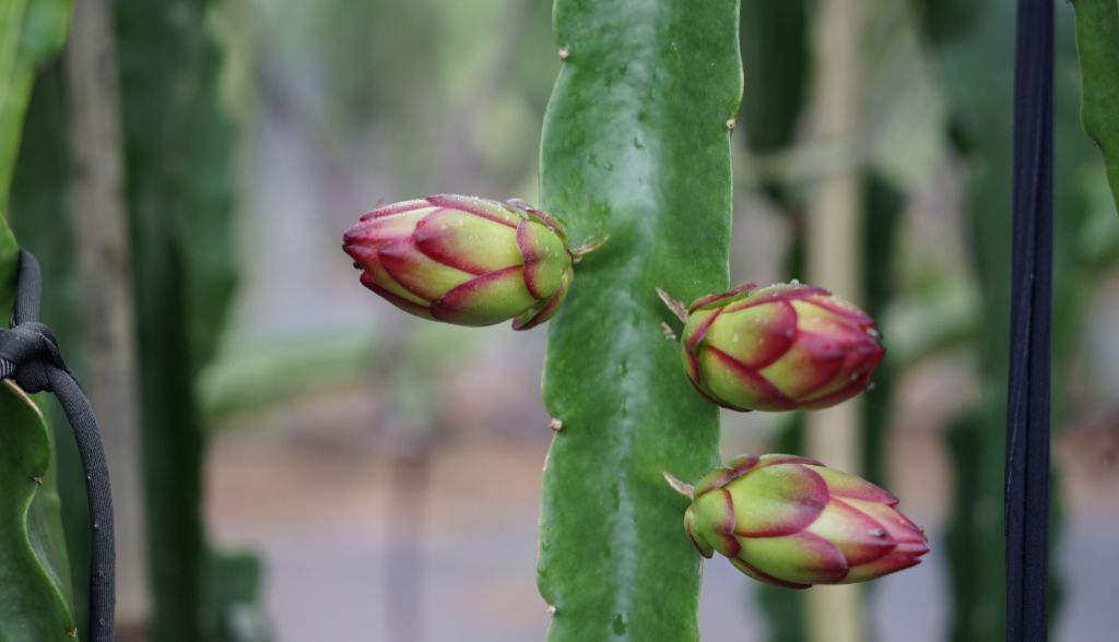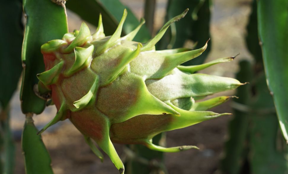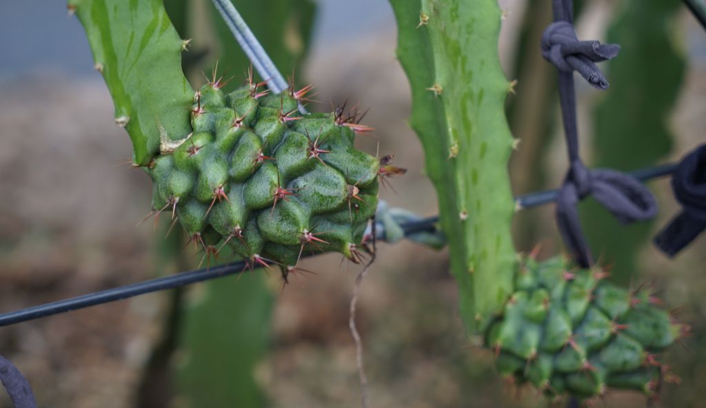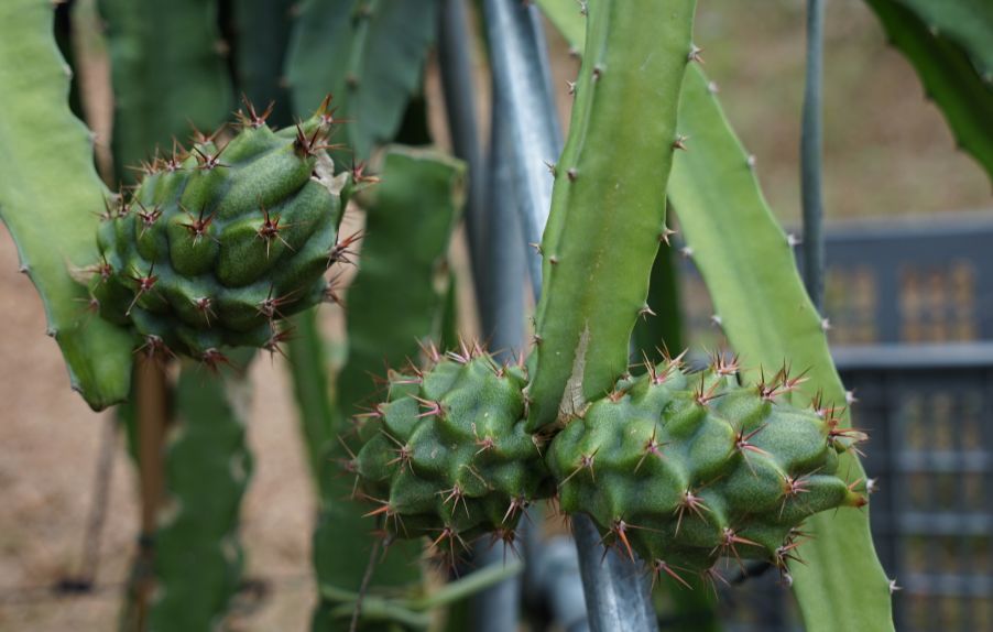 绿色的这种叫红花清白 ,因为花是红色的,果是青色的,果肉是白色的,所以叫红花清白,除了长相奇特,这些火龙果的口感也很不错。而且还有一股荔枝的清香味。