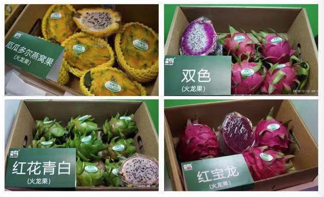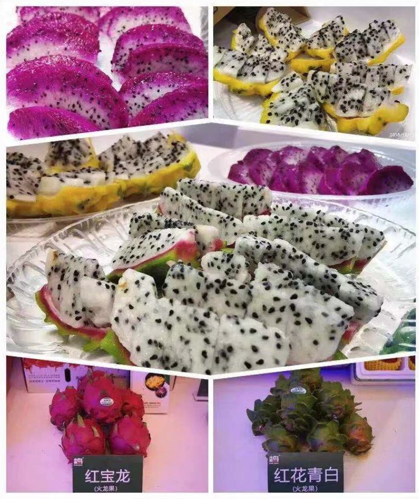 参展商介绍,这些长相奇特的火龙果,是商家从世界各地搜集来的火龙果品种。