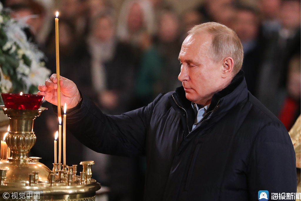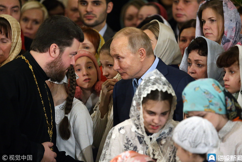 当地时间2019年1月6日,俄罗斯圣彼得堡,俄罗斯东正教庆祝圣诞节,总统普京在教堂出席圣诞礼拜仪式。图片来源:视觉中国