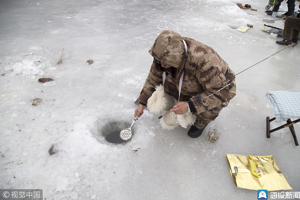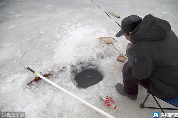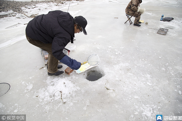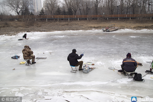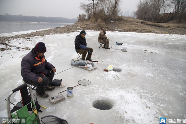 2019年1月13日,吉林省吉林市,几名老人在松花江边钓鱼。