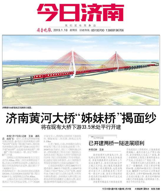 17日,从济南城市建设集团获悉,备受注目的济南黄河大桥“姊妹桥”(复线工程)将在现有大桥下游33.5米处平行开建。这是作为济南北跨“三桥一隧”工程中的最后一桥,其它“两桥一隧”已开建。