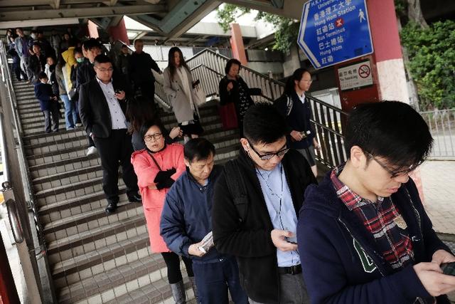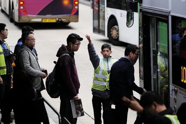 1月17日,在香港红磡海底隧道公交车站,人们在自觉排队乘车。新华社发 王申 摄
