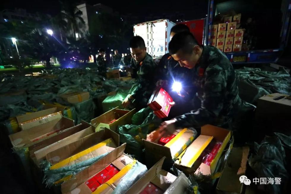 2018年,中国海警局查获涉嫌走私案件1100余起,现场查扣涉嫌走私成品油约13万吨(涉案成品油约52万吨)、冻品约1.4万吨、食糖约9000吨、烟酒6000余件以及珍稀野生动物及其制品、各类“洋垃圾”等,案值约43亿元,抓获涉案嫌疑人2768人。