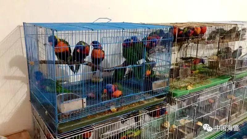 图为现场缴获走私珍贵濒危鸟类