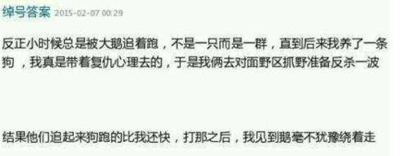 毕竟生活中大家被狗追的经历比较多,见到鹅的机会比较少。