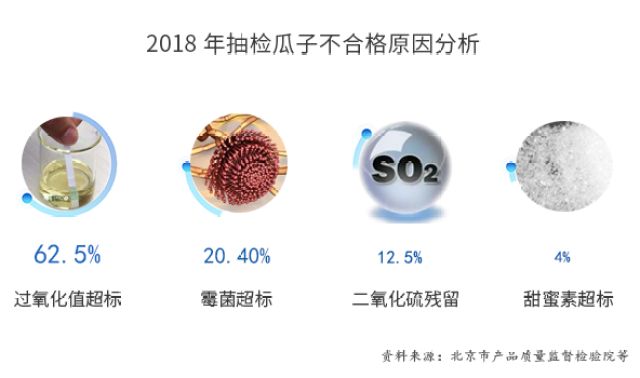 小编查阅2018年以来全国各地质检部门对瓜子的调查结果显示,过氧化值超标、霉菌超标、二氧化硫残留、甜蜜素超标为主要不合格项目,部分产品霉菌超过国家标准4倍多,堪称“毒瓜子”。本期“e查到底”就为您揭开瓜子壳中隐藏的秘密。