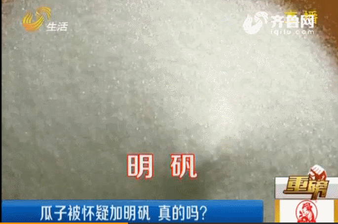 四川电视台记者分别从四家炒货店买来了四份山核桃味瓜子,送到食品检测研究中心进行检测分析。结果显示,其中三种山核桃味瓜子判断含有明矾。有业内人士透露,一些不负责任的生产商在加工时根本不会使用山核桃这种昂贵的调味料,而是大量加入添加剂,按照一定比例调配,以达到所需要的口感。“山核桃味瓜子里面加山核桃,你觉得有可能吗?核桃那么贵。”老板反问。