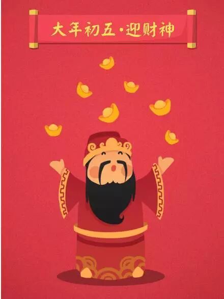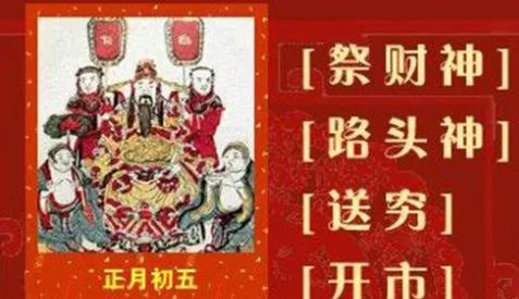 按照过去的风俗,春节期间大小店铺从大年初一起关门,而在正月初五开市。传说正月初五是财神生日,认为选择这一天开市必将生意兴隆。