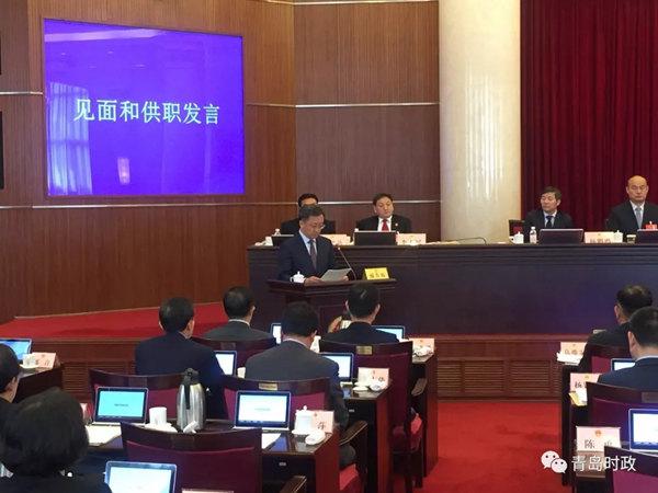 薛庆国在供职发言中说,今天,作为市政府副市长的提名人选,在这里接受市人大常委会的审议和表决,这是组织和全市人民对我的极大信任,给了我一个回报家乡的重要机会。我心怀感激,深感荣幸,更倍感责任重大,使命光荣,任务艰巨。2004年,我离开青岛,先后在省社科联、省文化厅、滨州市和省外办工作,经历了多个岗位的学习和锻炼,增长了一些业务知识,积累了一些工作经验。但不管在哪里工作,我作为一名青岛人,始终关心、关注着家乡的发展。每每知道家乡有了进步和成绩,我都会由衷地感到骄傲和自豪。过去的工作和生活中,我也时时处处能感受到家乡领导和同志们对我的关心和支持。特别是去年服务保障上合组织青岛峰会期间,与家乡的领导和同志们一起并肩作战,大家对由我负责的各项工作给予了全力支持配合,圆满完成了所承担的任务,让我在工作中感受到了浓浓的亲情。